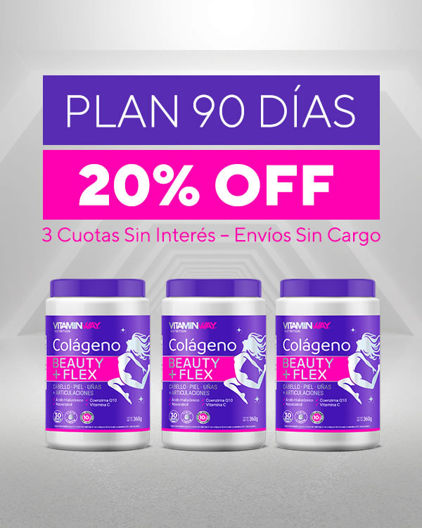 20% OFFPLAN 90 DÍAS COLÁGENO BEAUTY + FLEX ( 3 FRASCOS x360g c/u)$ 72.451,20 Precio habitual $ 90.564,003 cuotas sin interés de $ 6.653,00 -